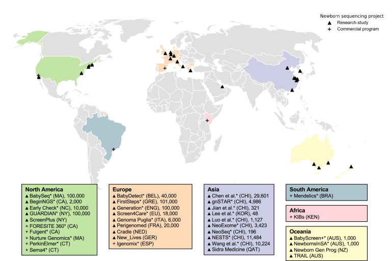 The various pilot studies, and there are now many, are also extremely variable, and have a diagnostic yield which is very variable, depending on which conditions are included, and usually do not state how many of them are actually treatable. Indeed there are over 30 current research programs into UNGS, as well 8 commercial bodies offering NGS if you pay for it (shown with the + symbol in the figure).