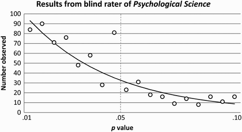 Another new publication has suggested a way to show this, the authors reckoned that if people are fiddling, then there should be fewer than expected p values which are just above 0.05, as they will have been “adjusted” downwards. Gadbury GL, Allison DB: Inappropriate fiddling with statistical analyses to obtain a desirable p-value: Tests to detect its presence in published literature. PLoS ONE 2012, 7(10):e46363. So they developed methods to compare the proportions of p-values in different ranges, just above 0.05 and just below 0.1. Unfortunately their method only works on large data sets of p values, and can’t be used for an individual study.