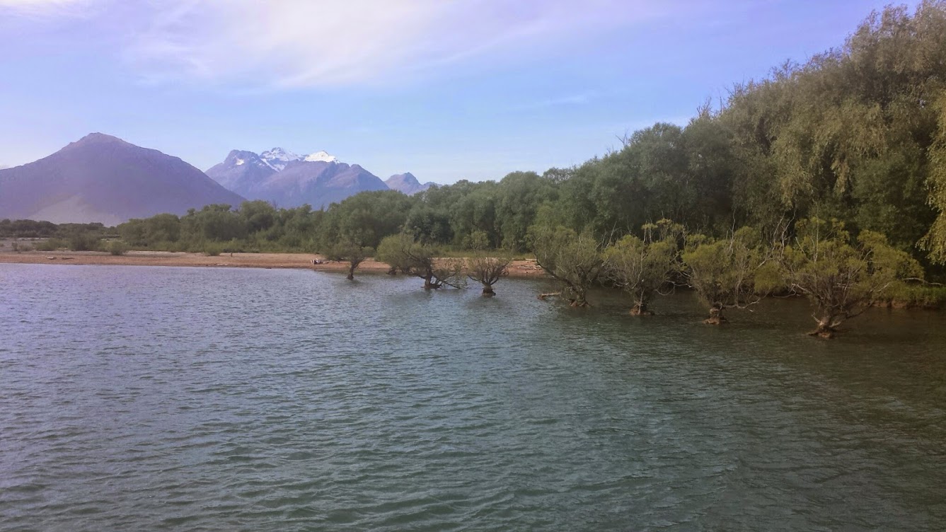 Towards the end of the week we went to the north end of lake Wakatipu, to a village called Glenorchy, where there is a nature reserve, and a splendid view over to moutains topped with glaciers.