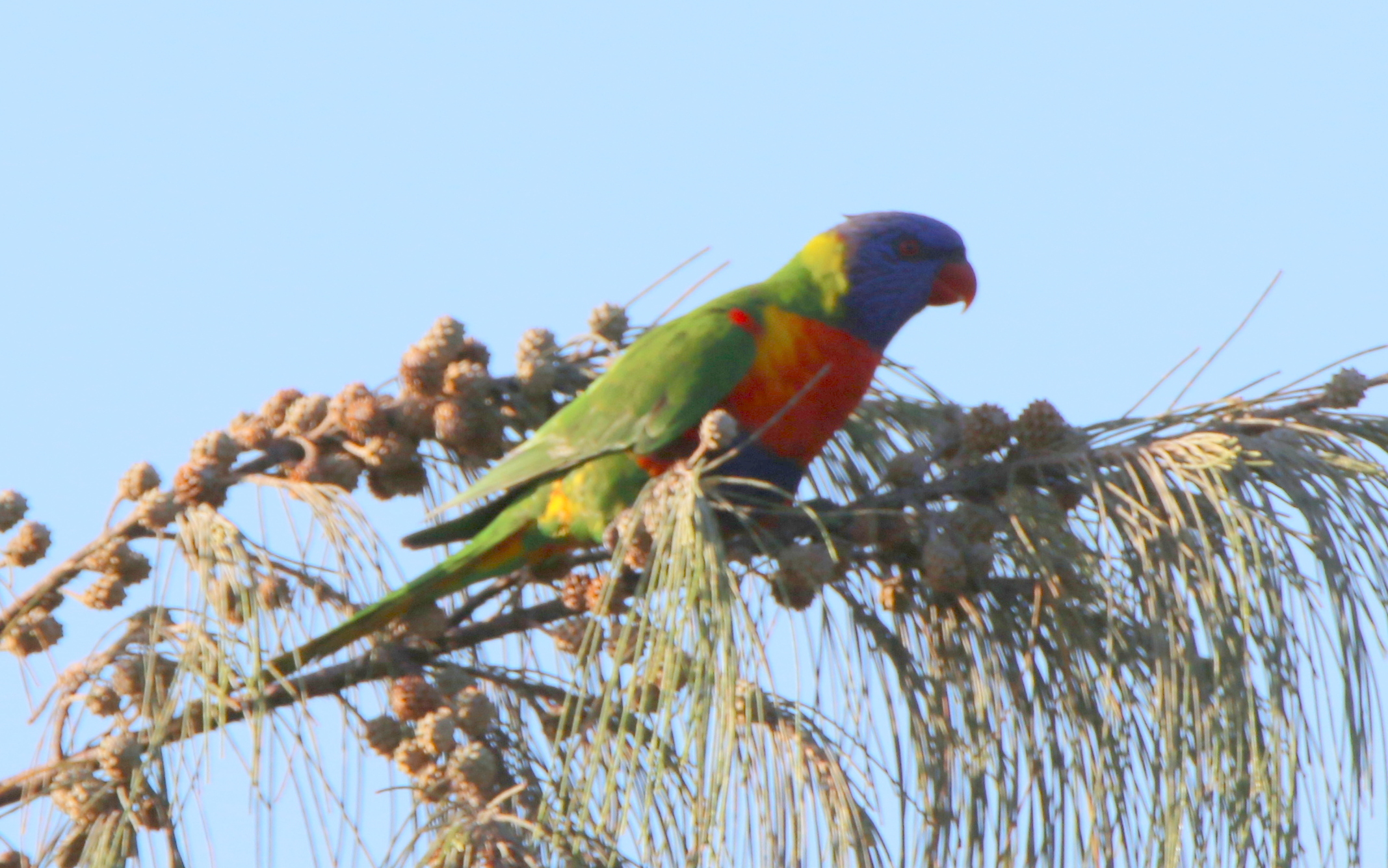 Rainbow Lorikeets like this one are everywhere, and early in the morning there was frequently a flock of them passing our house.