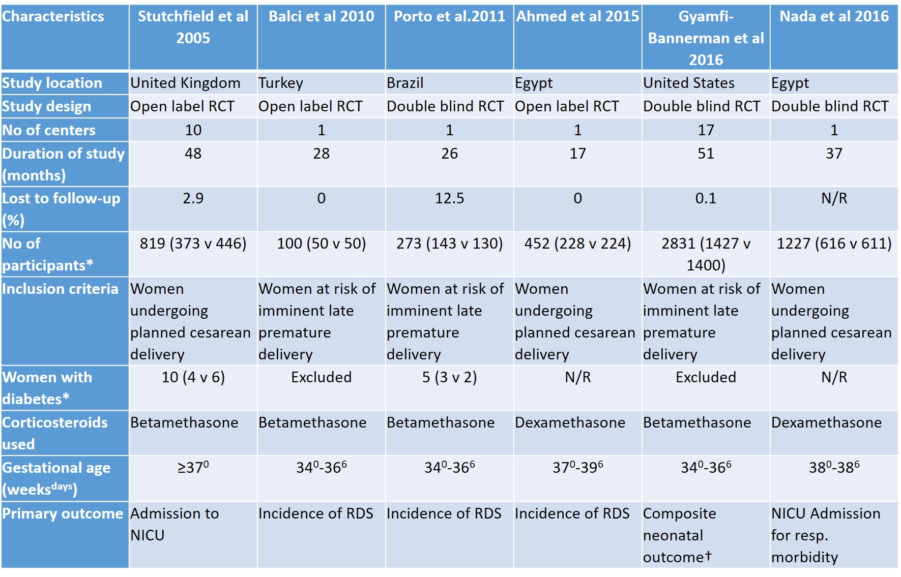 A new systematic review in the BMJ (Saccone G, Berghella V. Antenatal corticosteroids for maturity of term or near term fetuses: systematic review and meta-analysis of randomized controlled trials. BMJ. 2016;355:i5044) includes 3 studies which examined the use of antenatal steroids in mothers at high risk of delivery between 34 and 36 weeks 6 days, and 3 studies of using antenatal steroids prior to elective section after 36 weeks.image1