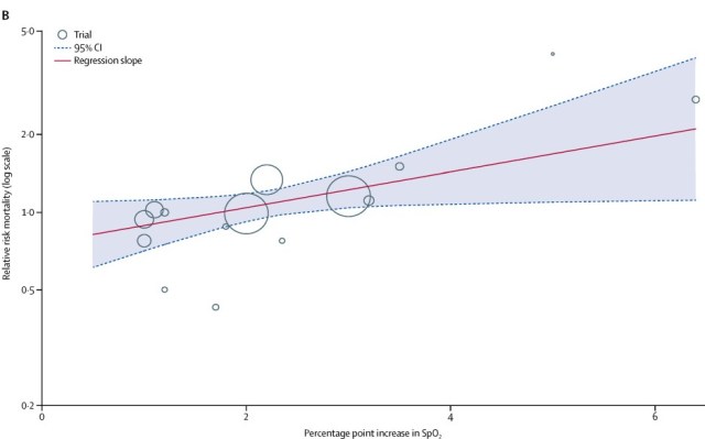 IOTA also performed a meta-regression suggesting that there is a dose effect, that the higher the saturations achieved with liberal therapy the greater the adverse impact on mortality.