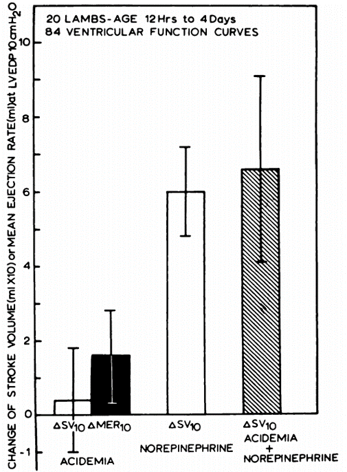 Despite my comments at the start, even in the 1960s there were studies using medically relevant models of acidosis, such as this one from Yale (Talner NS, et al. Influence of acidemia on left ventricular function in the newborn lamb. Pediatrics. 1966;38(3):457-64)