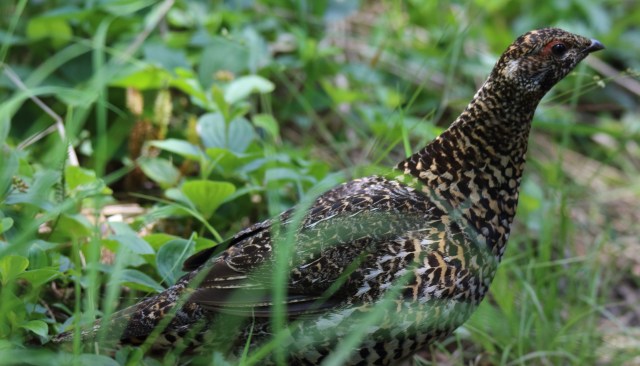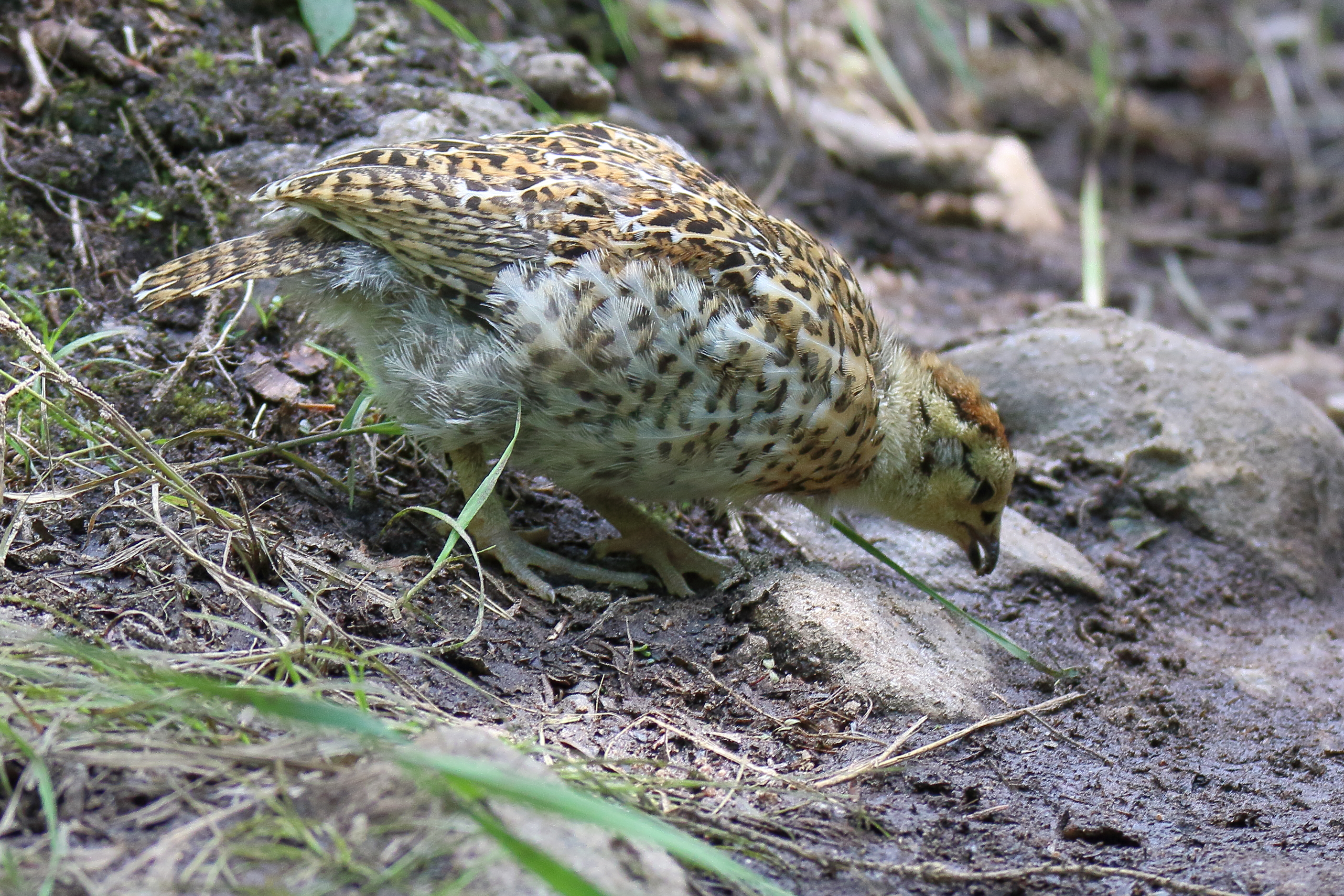 This is a female Spruce Grouse that we surprised out foraging with her chicks, here is one of them: