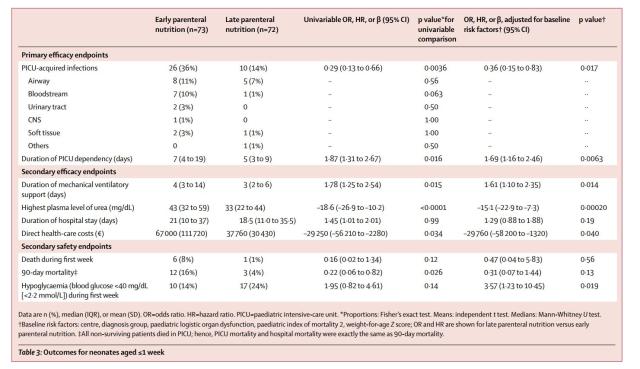 The newborn group from that trial was analyzed separately (van Puffelen E, et al. Early versus late parenteral nutrition in critically ill, term neonates: a preplanned secondary subgroup analysis of the PEPaNIC multicentre, randomised controlled trial. Lancet Child Adolesc Health. 2018;2(7):505-15). I must say I am really pissed off that even 2 years after this was published it is still not open access. Even with my good fortune as a professor of paediatrics at the University of Montreal and our inter-library loan system, I still cannot get immediate access to the full text of this study. The Lancet group of journals, which includes the journal which published this article, asks for at least $22 (Canadian) to have short term access to the full text. The research was performed using public money (European money, but still), and now to see the results I have to spend my own cash! Thankfully the authors have been very helpful and sent me a copy of the pdf immediately when I asked.