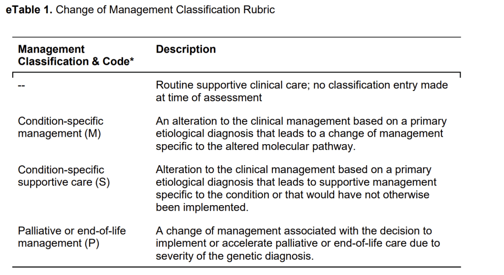 This looks like a reasonable way of defining COM after genetic testing, and I will assume that this also was used to determine COM in the delayed group if they received a genetic diagnosis prior to getting the WGS results.