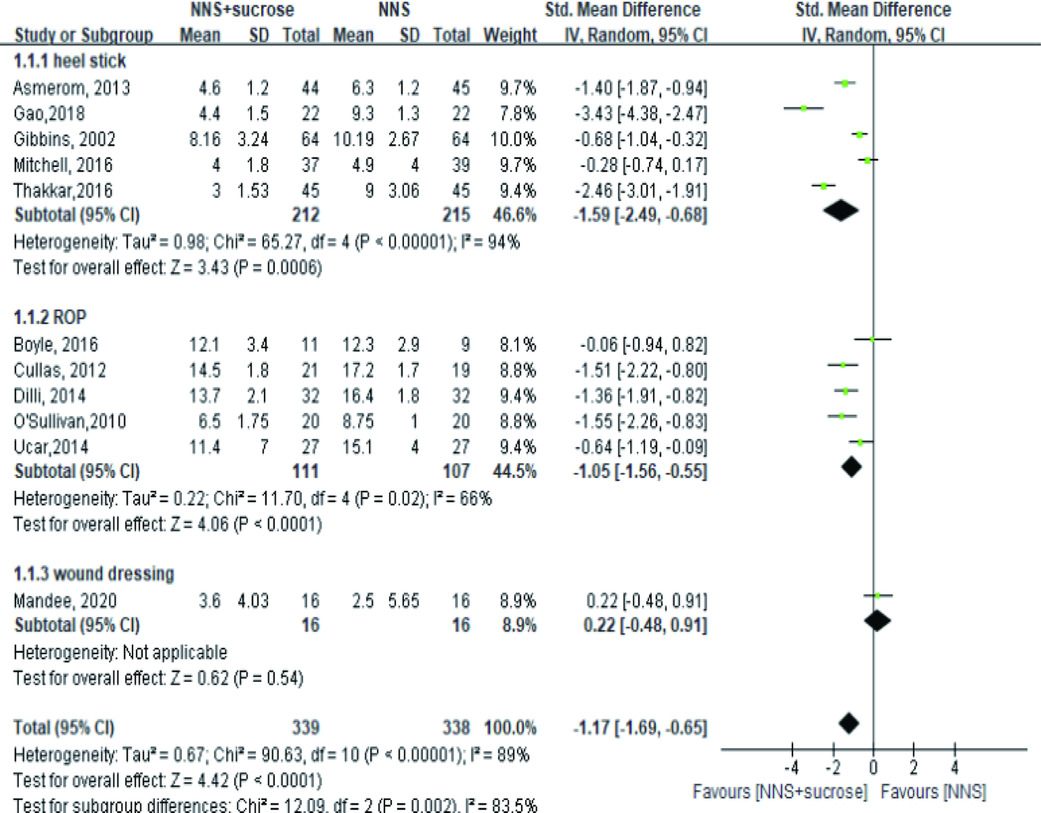 A new systematic review has examined the role of NNS in combination with sucrose, and shows that there is a consistently better control of pain with the combination than with either alone. (Li Q, et al. Efficacy and safety of combined oral sucrose and nonnutritive sucking in pain management for infants: A systematic review and meta-analysis. PLoS One. 2022;17(5):e0268033)