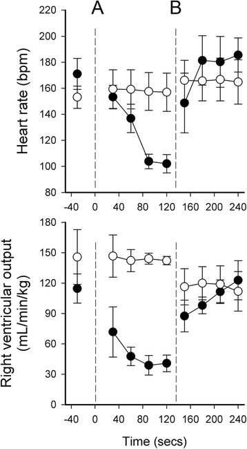 you can see that the delay in PPV after cord clamping among the lambs was over 2 minutes, and the bradycardia was not really evident for the first 30 seconds (even though RV output is very low). As we don’t wait for 2 minutes of apnoea after cord clamping in human babies, we might well not see the bradycardia that is seen in lambs, despite a probably much lower RV output.