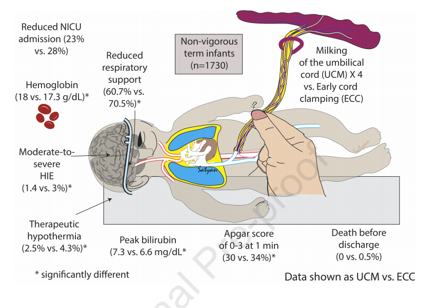 Anup Katheria, the principal investigator of this study, has previously published a review article (in 2018), which is open access, available via PubMed Central. He reviews the then available data, and the rationale which formed the basis for this study. I must say there is much less data from animal models regarding cord milking, and what is available is not reassuring, one study from Stuart Hooper’s lab, that I recently referred to, studied preterm lambs, (Blank DA, et al. Haemodynamic effects of umbilical cord milking in premature sheep during the neonatal transition. Arch Dis Child Fetal Neonatal Ed. 2018;103(6):F539-F46) and showed that if you did the procedure in one of the two ways they examined, they did not find much evidence that you actually increased blood volume. In that lamb study the milking was done in 2 different ways, the first was to release the cord between milks, so that it could refill from either end of the cord. The second method was to milk the cord, then keep it occluded near the lamb, so that it refilled from the placental end, then it was milked again. With the second method there was a net transfusion of about 9 mL/kg of blood. They also showed major haemodynamic fluctuations during the procedure, with blood pressure shooting up and down during milking.