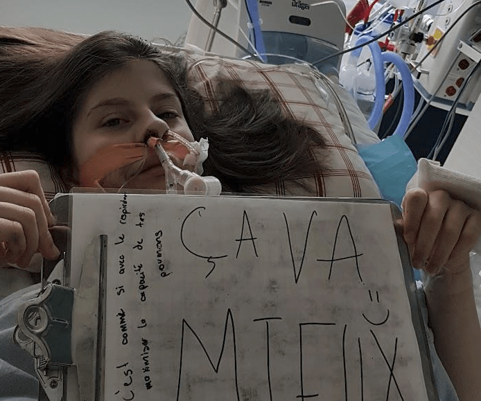 It also included pictures of Violette in the PICU, intubated after her tracheal reconstruction at the age of 15. She noted that Violette did not have “BPD”, as she came out of oxygen a couple of days before she hit 36 weeks, but that she certainly had respiratory fragility, and had serious upper airway problems, receiving several courses of steroids for stridor with signs of obstruction during her first few years of life. An outcome which has rarely or never been described in neonatal follow up studies, but which is well known to paediatric ENT surgeons. (As you can see, the image is from a day or two after the surgery when “ça va mieux”, things are going better).