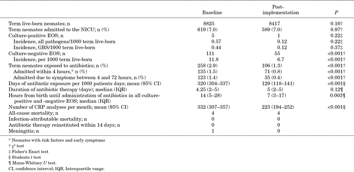 That study was limited to babies of at least 37 weeks, and was able to decrease antibiotic exposure from about 3% to about 1.3%; the incidence of “culture-negative sepsis” also declined dramatically, but remained, supposedly, 50 times more frequent than culture-positive sepsis.
