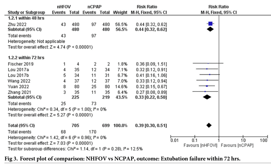 It also is not clear if all the babies benefited from an optimal approach to extubation, with caffeine pre-treatment, evaluation of spontaneous breathing, and higher CPAP levels in those still requiring oxygen, all of which can reduce extubation failure rates, and might eliminate a possible advantage of nHFOV, or not. They are also all tiny or modestly sized trials, only one of which was individually significant, which inflates the probability of a chance finding.