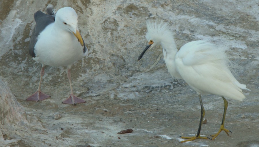 Snowy Egret and Pacific Gull
