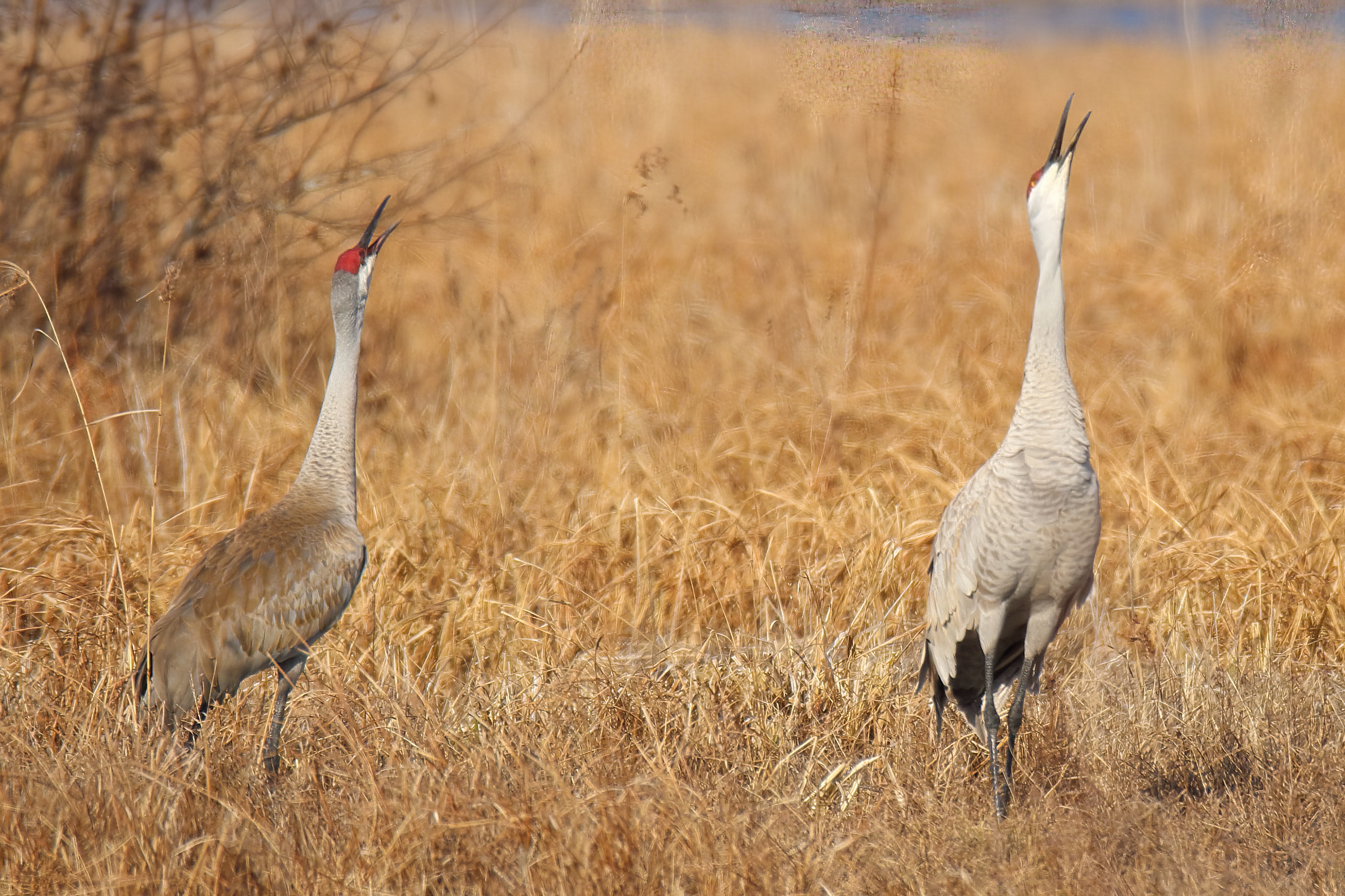 Sandhill cranes singing